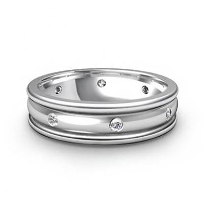 Men's Diamond Eternity Dome Wedding Band Bezel Set 14k W Gold (0.16Ct. tw.)