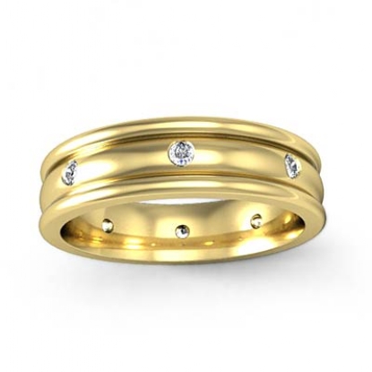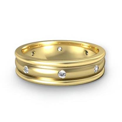 Men's Diamond Eternity Dome Wedding Band Bezel Set 18k Gold (0.16Ct. tw.)