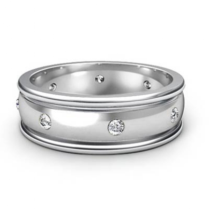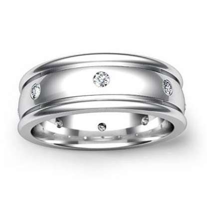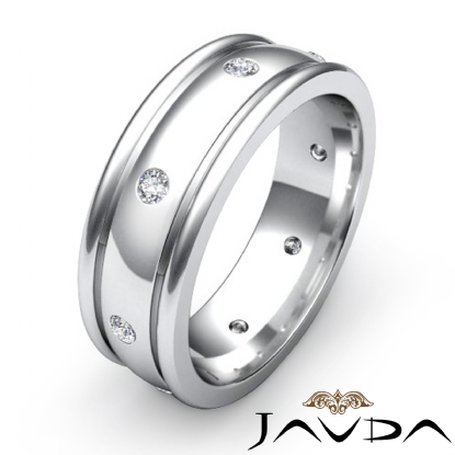 Dome Bezel Set Men's Diamond Eternity Wedding Band 14k W Gold (0.16Ct. tw.)