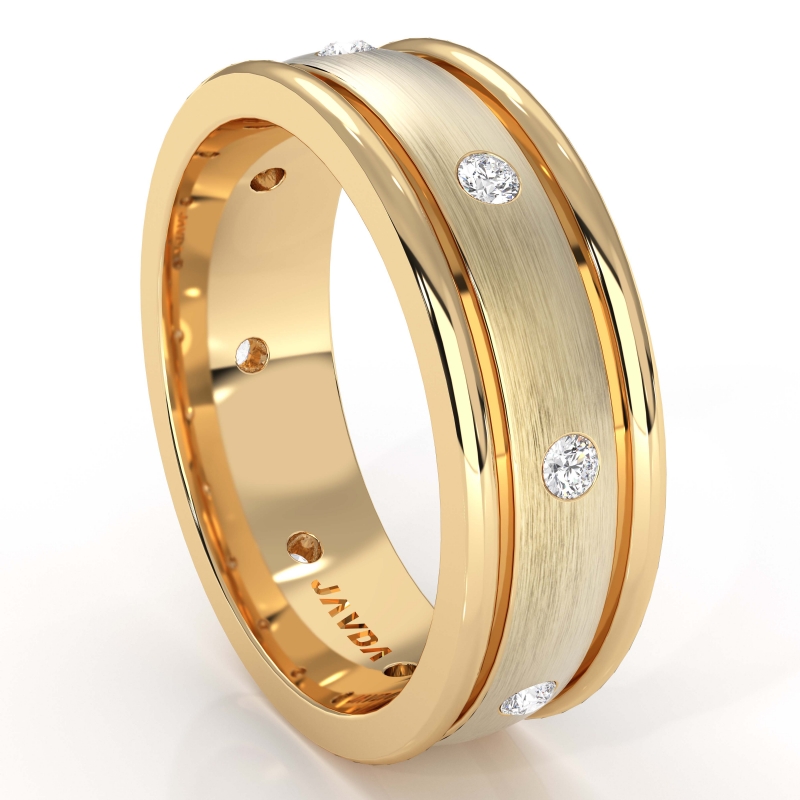 This 7.5mm wedding ring for him is made in comfort fit design and available in 14k & 18k 2 tone gold.