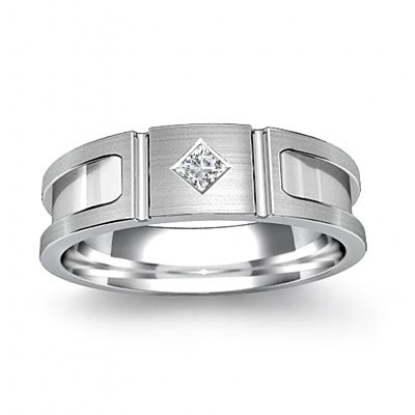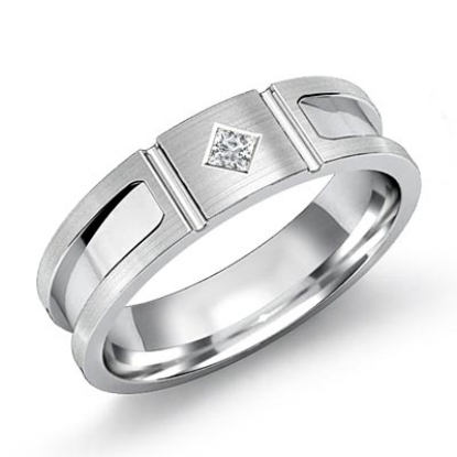 Stylish handmade diamond men's half wedding band is crafted in Platinum 950. Featuring matte finished with princess cut diamond set in a bezel setting.