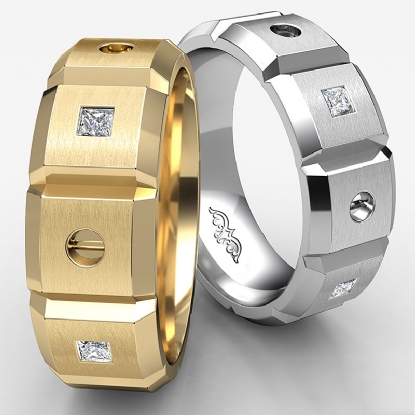 This classic and durable 8mm wide ring for him is comfort fit and available in 14k & 18k 2 tone gold and white gold, yellow gold and rose gold & platinum 950.