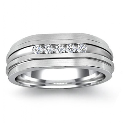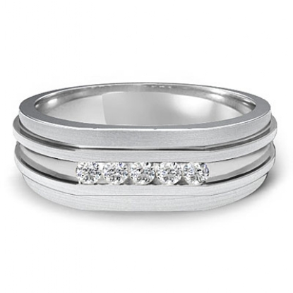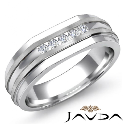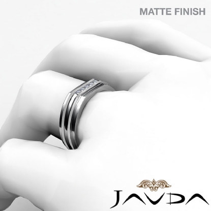 Matte Flat Edge Channel Diamond Men's Half Wedding Band Platinum (0.15Ct. tw.)