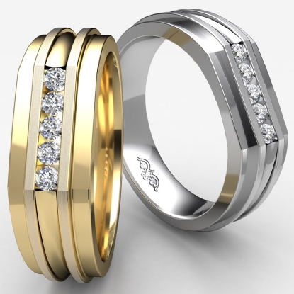 Available in 14k & 18k white gold, yellow gold and rose gold & platinum 950. This 7mm wide wedding ring for him is comfort fit.