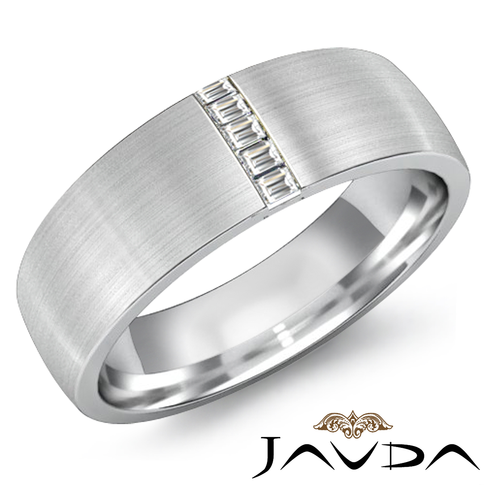 Channel Baguette Diamond Matte Men's Half Wedding Band Platinum (0.2Ct. tw.)