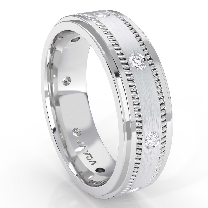 Milgrain Step Edge Diamond Eternity Men's Wedding Band Platinum (0.15Ct. tw.)
