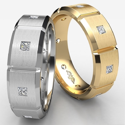 This classic ring designed with princess cut diamonds in a bezel setting. Available in 14k & 18k white gold, yellow gold and rose gold & platinum 950.