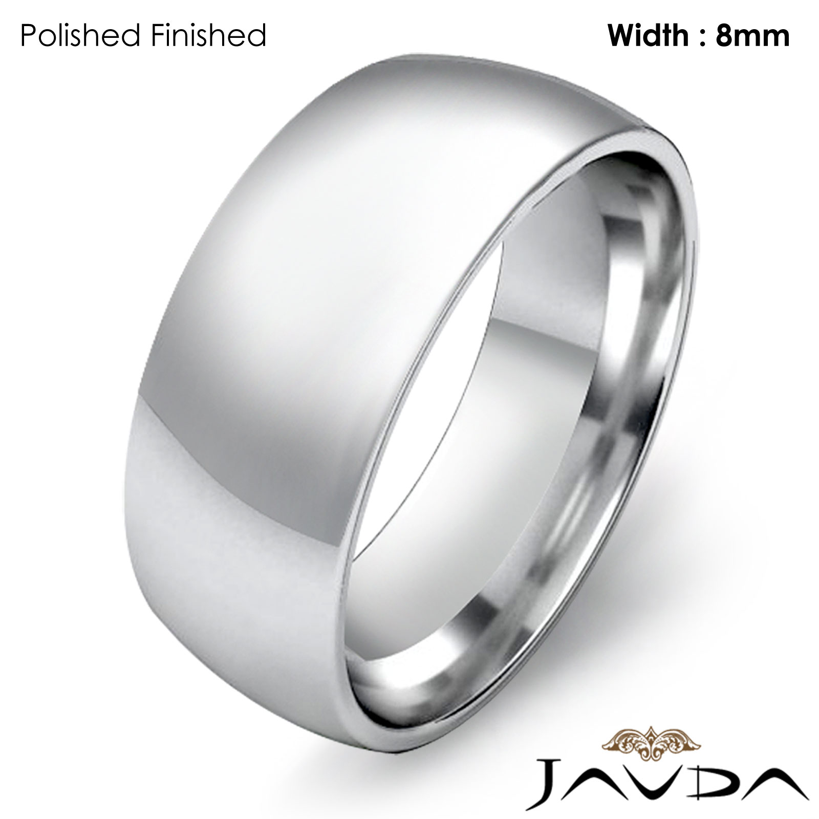 8.6 gram Men's 18k Gold White Solid Wedding Band. Dome style confort-fit band. Ring Size is 4". Width is 8mm. Available in high polish and matt finish.