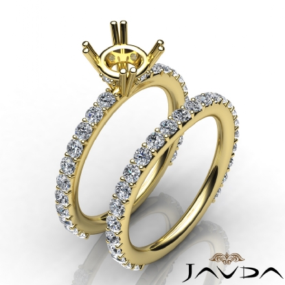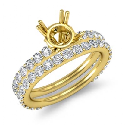 Truly extraordinary, this engagement ring and matching band feature round semi mount in prong setting and round pave set diamonds on the shank. This bridal set is made in 14k Gold Yellow. (1.5Ct. tw.)