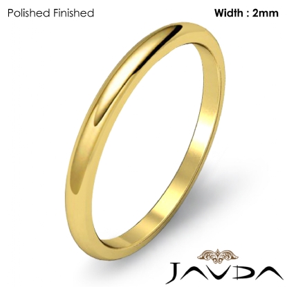 18k Gold Mens Wedding Band Polish Plain Dome Solid Ring 2mm 2.2g 4"