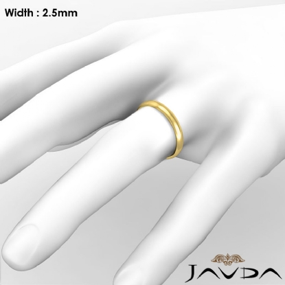 2.6 gram Men's 18k Gold Yellow Solid Wedding Band. Dome style band. Ring Size is 4". Width is 2.5mm. Available in high polish and matt finish.