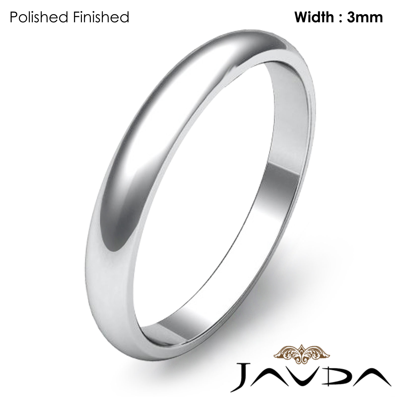 3mm Dome Plain Ring Simple Mens Wedding Solid Band 18k W Gold 2.7g 4"