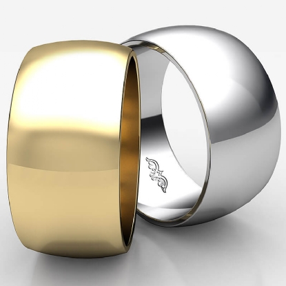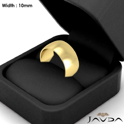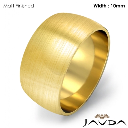 9.1 gram Men's 18k Gold Yellow Solid Wedding Band. Dome style band. Ring Size is 4". Width is 10mm. Available in high polish and matt finish.