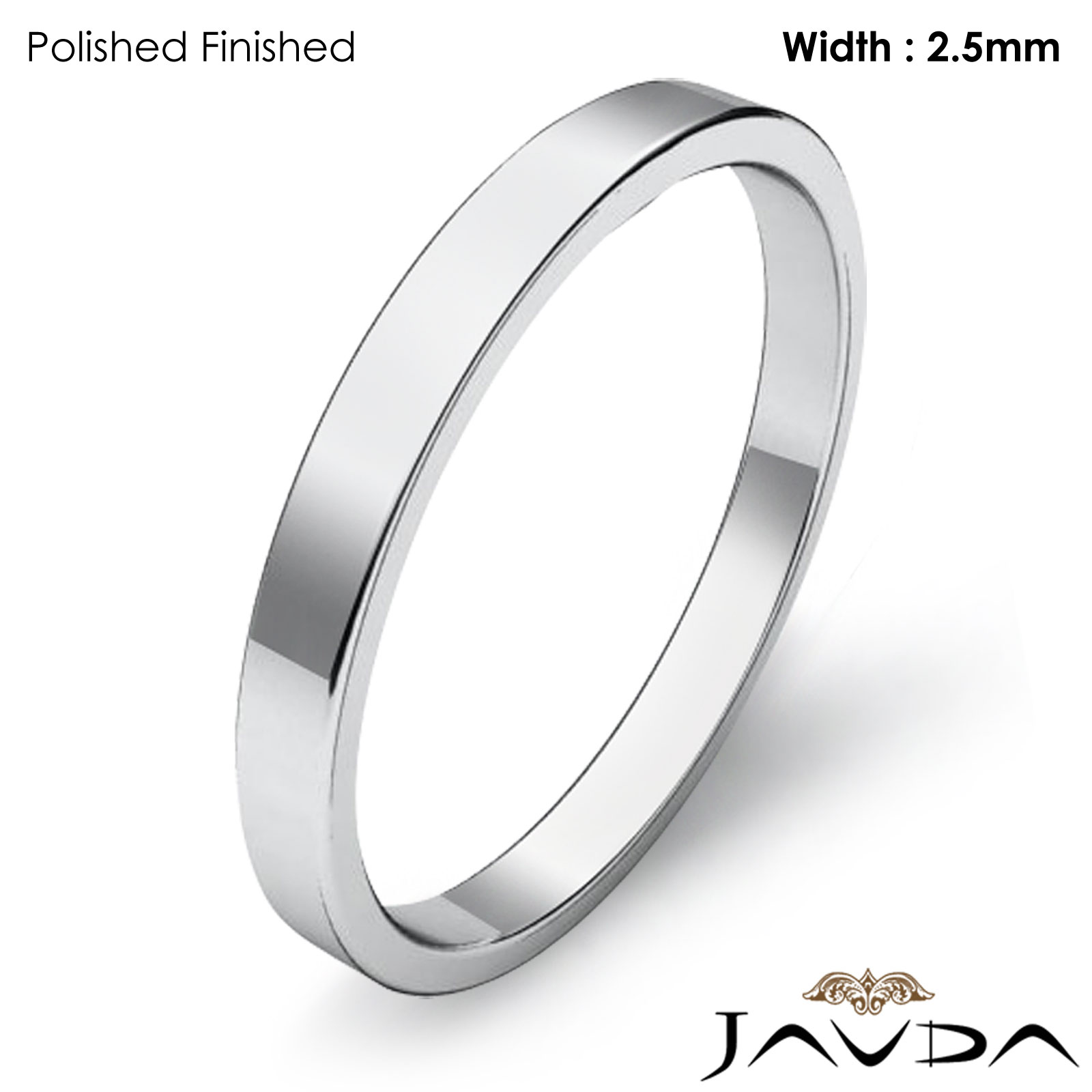 Plain Ring 2.5mm Men Wedding Flat Fit Pipe Cut Band 18k W Gold 3.9g 4"
