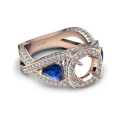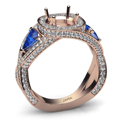 3 Stone Diamond Engagement Trillion Round Semi Mount Ring 14k Rose Gold (1.3Ct. tw.)