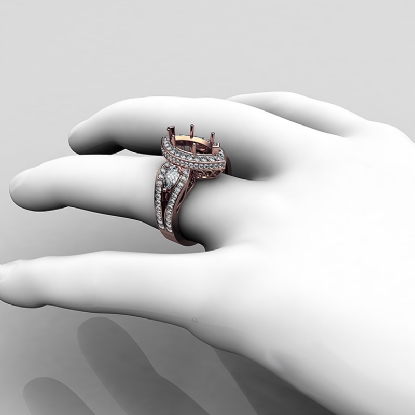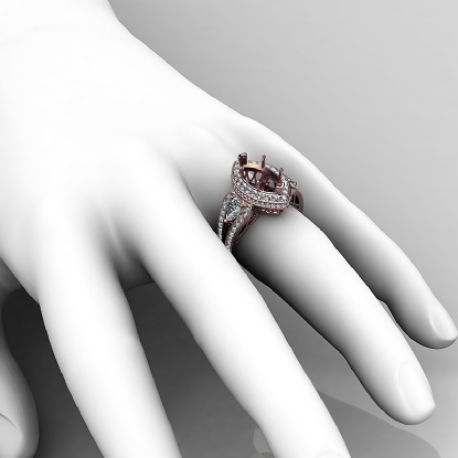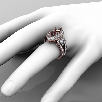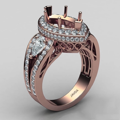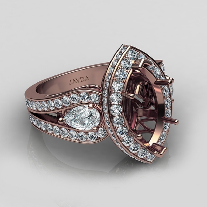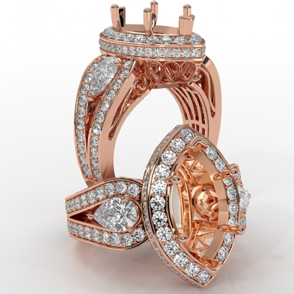 3 Stone Marquise Halo Diamond Engagement Antique & Vintage Ring 14k Rose Gold Semi Mount (1.85Ct. tw.)