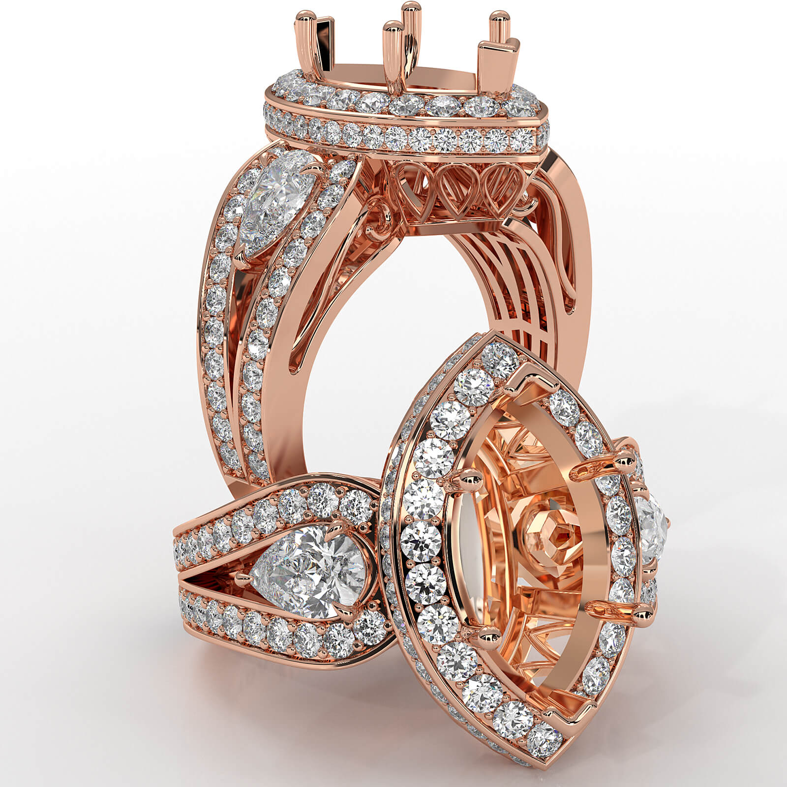 3 Stone Marquise Halo Diamond Engagement Antique & Vintage Ring 18k Rose Gold Semi Mount (1.85Ct. tw.)