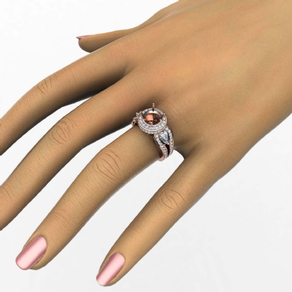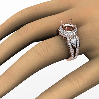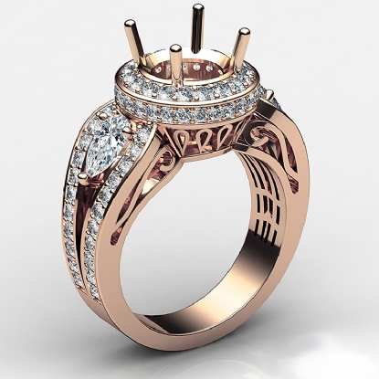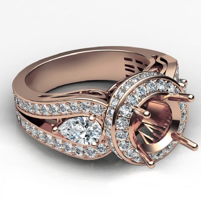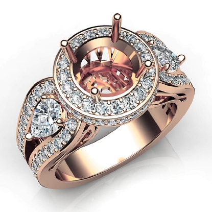 3 Stone Round Diamond Vintage style Engagement Halo Ring Set 18k Rose Gold Semi-Mount (1.85Ct. tw.)