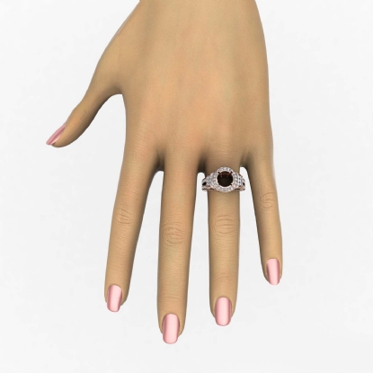 This antique Women's diamond engagement ring made in 14k Rose Gold, showcases a semi-mount halo of round pave-set diamonds, along with smaller round diamonds in pave setting on the royal shank. (2.7Ct. tw.)