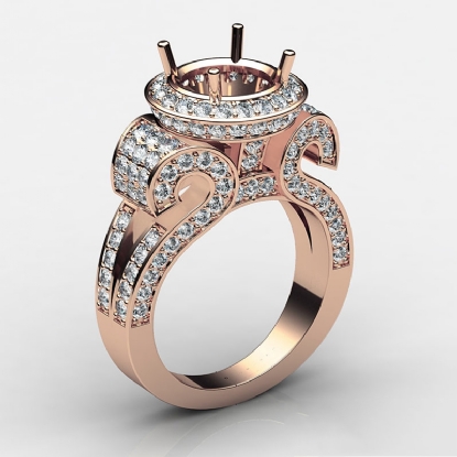 Round Diamond Engagement Ring Antique & Vintage Halo Pave Semi Mount 14k Rose Gold (2.7Ct. tw.)