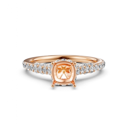 Diamond Engagement Pave Setting 14k Rose Gold Cushion Semi Mount Ring (0.65Ct. tw.)