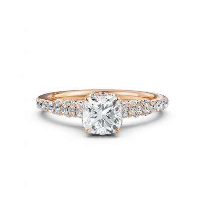 Side 0.65 ctw. Round Diamond Round Diamond Women Engagement & Anniversary Solid Ring made in 14k Rose Gold. Diamonds are set in Pave Setting for Cushion Cut in a Semi Mount. (0.65Ct. tw.)
