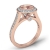 Alluring in every way, this intricate 14k Rose Gold engagement ring features a round semi mount. It showcases pave set round diamonds in halo & along the beautiful shank. (0.47Ct. tw.)