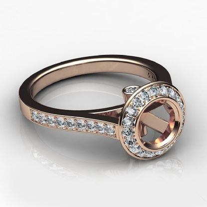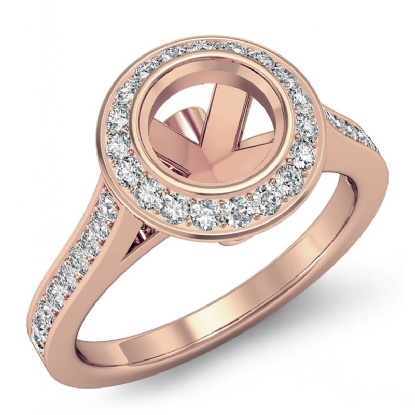 Halo Pave Setting Diamond Engagement Ring 14k Rose Gold Round Semi Mount (0.47Ct. tw.)