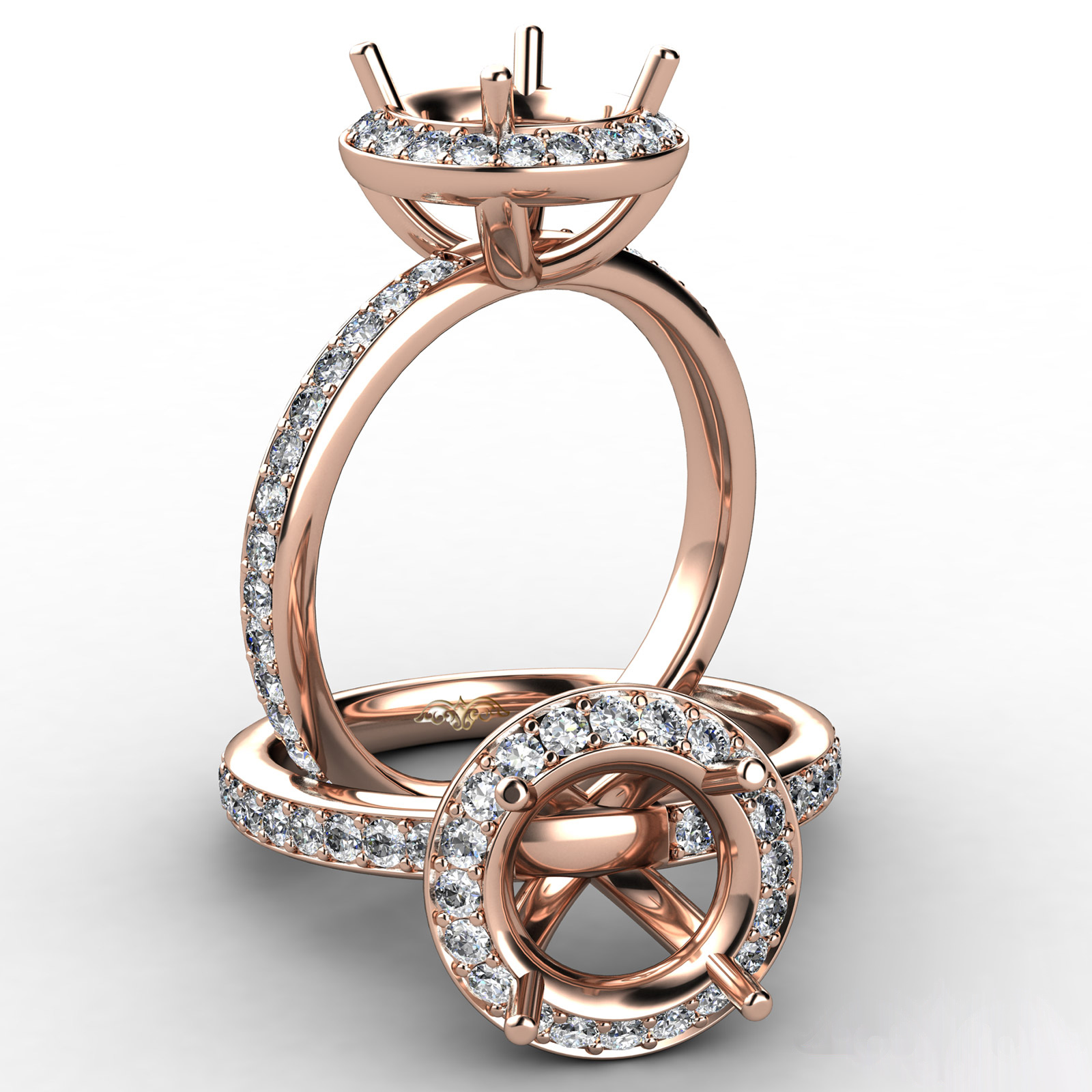 Pave Diamond Vintage Engagement Ring 14k Rose Gold Halo Setting Semi Mount (0.95Ct. tw.)