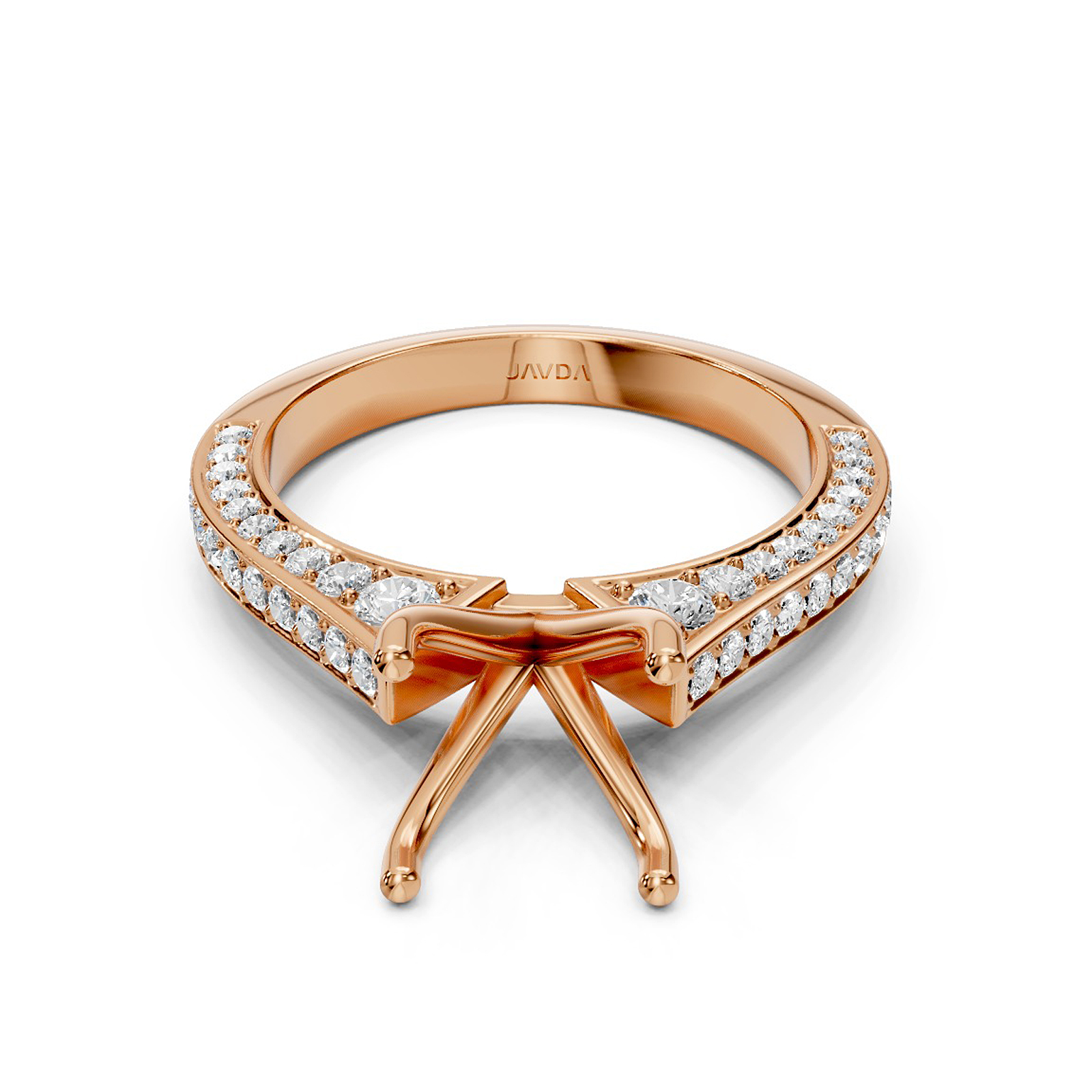 Eyes will be fixated on this immaculate 14k Rose Gold semi mount diamond engagement ring, showcasing pave set diamonds that complement your choice of center diamond. Total weight of this ring is . (1Ct. tw.)