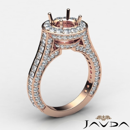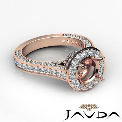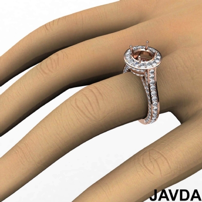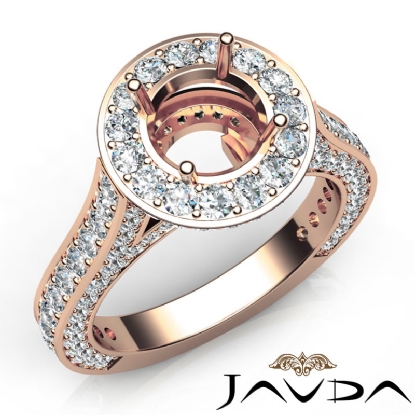 Diamond Engagement Round Semi Mount Halo Pave Setting Ring 14k Rose Gold (2.1Ct. tw.)