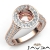 Alluringly distinct, this 14k Rose Gold and diamond engagement ring features a round semi mount with pave set round diamonds sparkling on the halo and the shank. (2.1Ct. tw.)