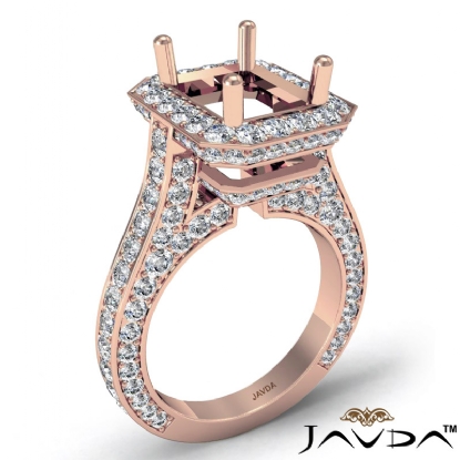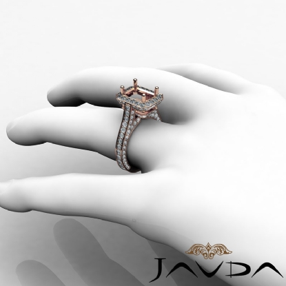 Diamond Engagement Halo Setting Ring Emerald Semi Mount 18k Rose Gold (2.1Ct. tw.)