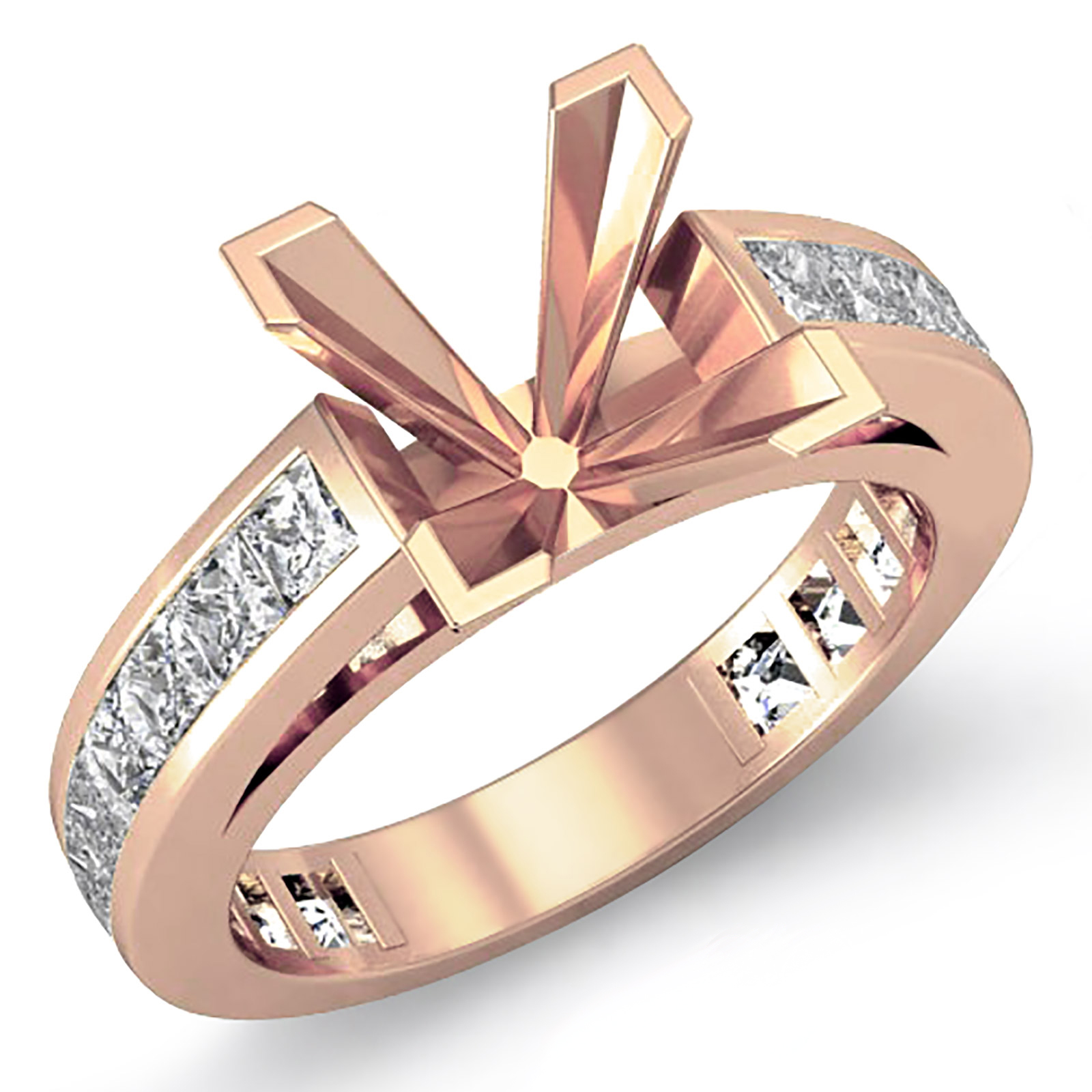 Princess Diamond Engagement Ring Channel 14k Rose Gold Semi Mount (1.2Ct. tw.)