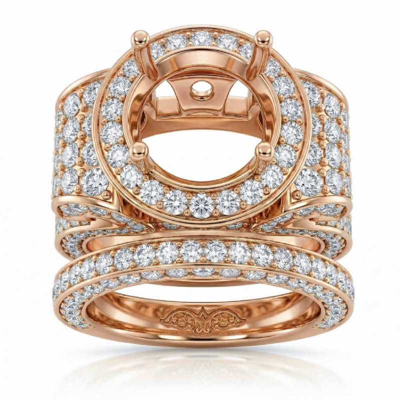 Diamond Engagement Ring Round Halo Pave Setting Bridal Set 14k Rose Gold (3.7Ct. tw.)