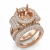 This antique Women's diamond engagement ring and matching band, showcases a round semi-mount halo and a royal shank of round pave-set diamonds. This bridal set is made in enduring 14k Rose Gold. (3.7Ct. tw.)
