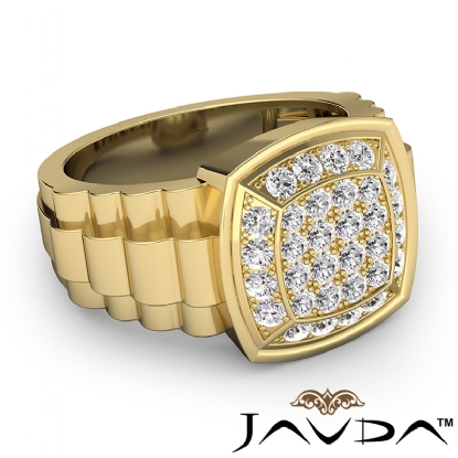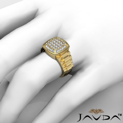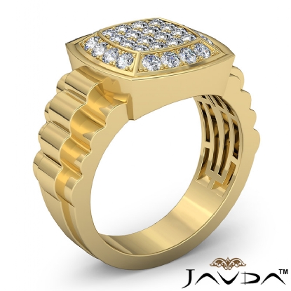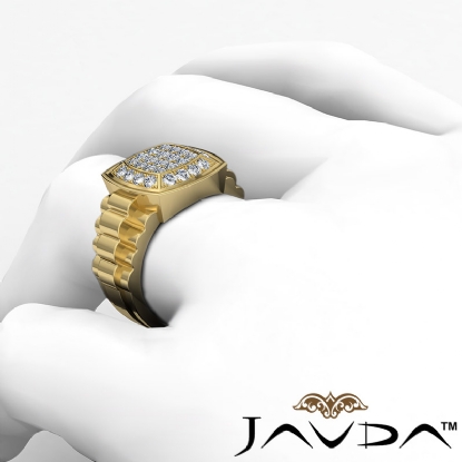 Sophisticated rolex style hip hop mens cluster diamond ring crafted in high polished 14k Gold Yellow. This affordable solid diamond ring features dazzling round brilliant cut diamonds, each expertly set in a micro pave setting. Available in 14k and 18k white gold, yellow gold and platinum 950. (1Ct. tw.)