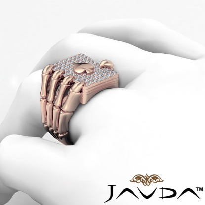Hip Hop Skull Hand Claw Poker Playing Card Mens Diamond Ring 14k Rose Gold (0.8Ct. tw.)