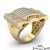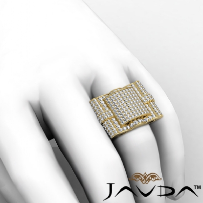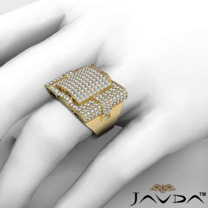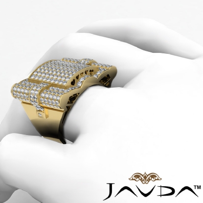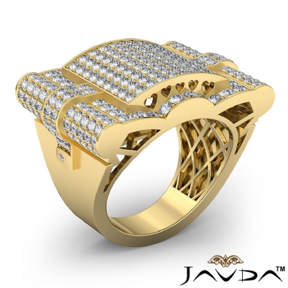 Stunning cluster diamond mens ring designed in hip hop style from precious metal. This luxurious ring features sparkling round brilliant cut diamonds in micro pave set with beautiful heart filigree on bridge. Professionally handmade in lustrous 18k Gold Yellow. Available in 14k and 18k white gold, yellow gold, rose gold and platinum 950. (3.5Ct. tw.)