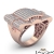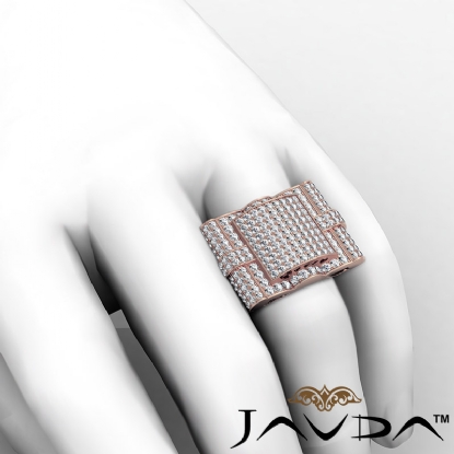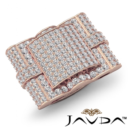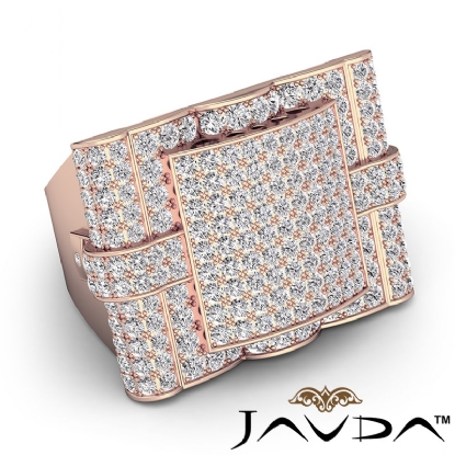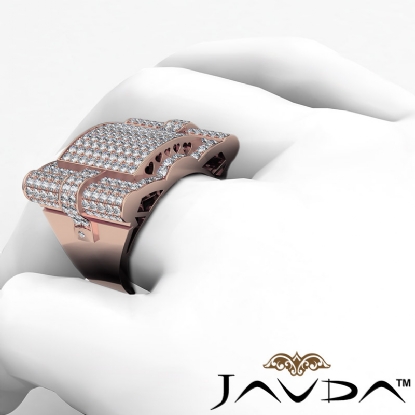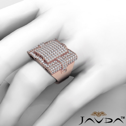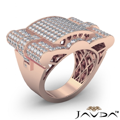 Stunning cluster diamond mens ring designed in hip hop style from precious metal. This luxurious ring features sparkling round brilliant cut diamonds in micro pave set with beautiful heart filigree on bridge. Professionally handmade in lustrous 14k Rose Gold. Available in 14k and 18k white gold, yellow gold, rose gold and platinum 950. (3.5Ct. tw.)