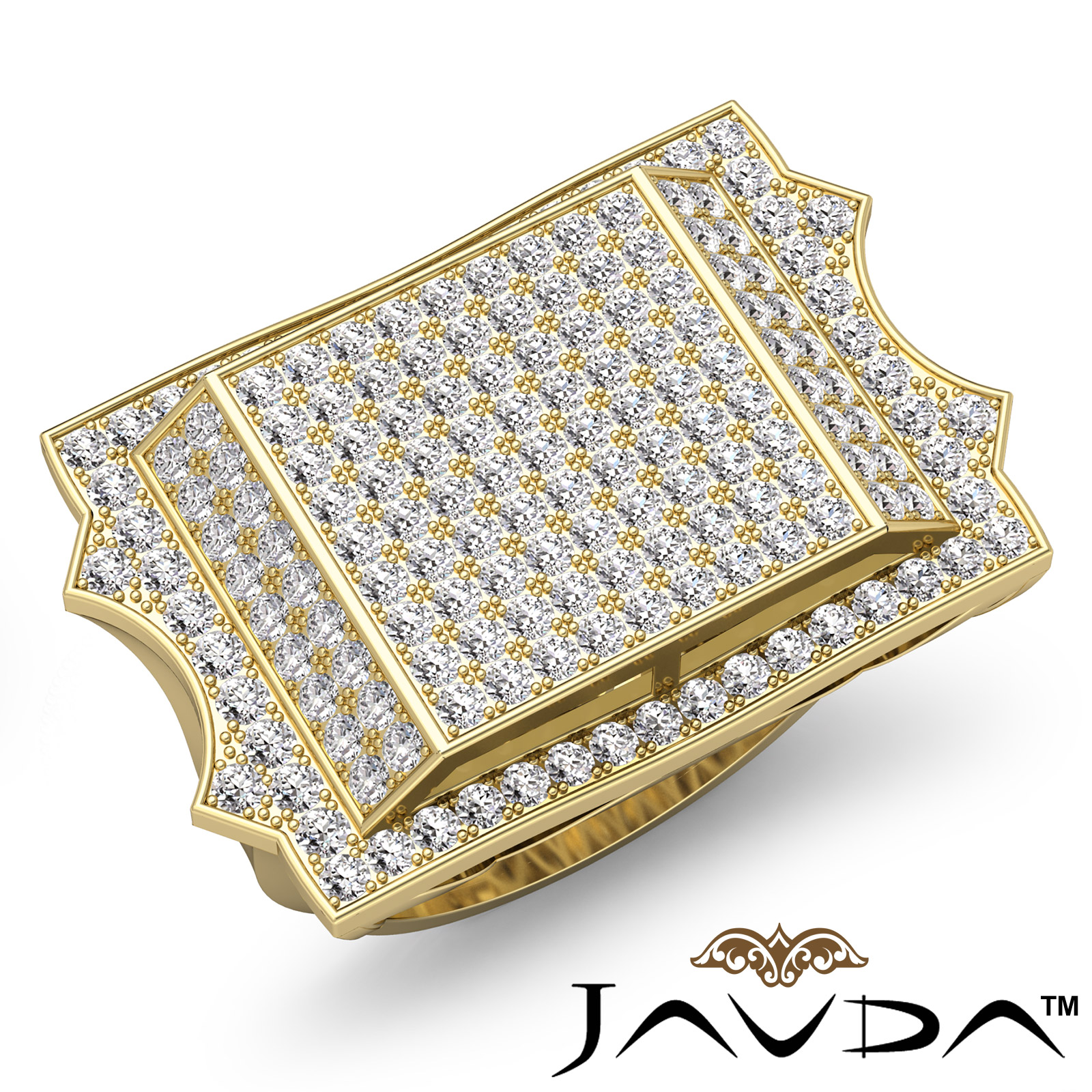 Wide designer cluster hip hop style mens diamond ring made from precious 18k Gold Yellow. This bold and heavy diamond ring features brilliant round cut diamonds in a micro pave setting. Available in 14k and 18k white gold, yellow gold, rose gold and platinum 950. (1.81Ct. tw.)
