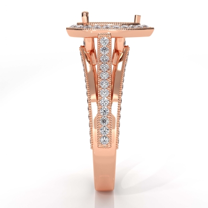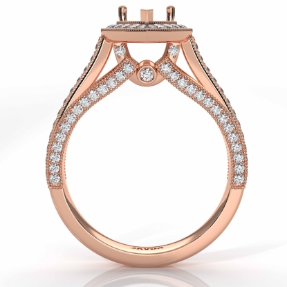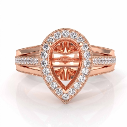 Halo Pave Diamond Engagement Pear Semi Mount Millgrain Ring 14k Rose Gold (0.9Ct. tw.)