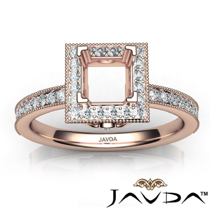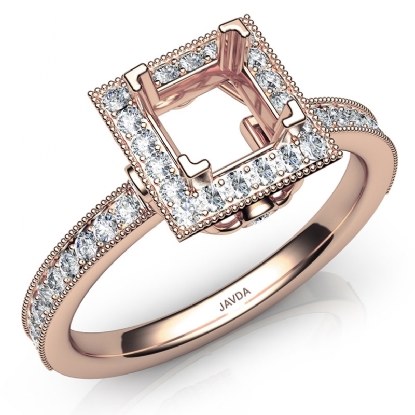 Halo Pave Set Diamond Engagement 14k Rose Gold Princess Semi Mount Ring (0.5Ct. tw.)