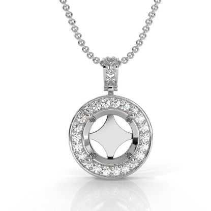 Pre-Set Pave Set Halo Round Diamond Pendant in 14k W Gold (0.6Ct. tw.)