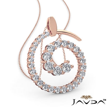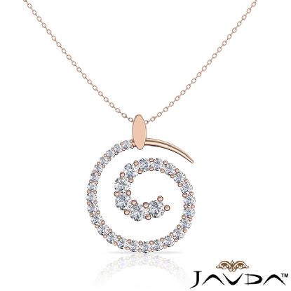 Round Diamond Graduated Spiral Pendant Necklace Prong 14k Rose Gold (1Ct. tw.)