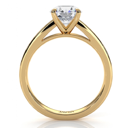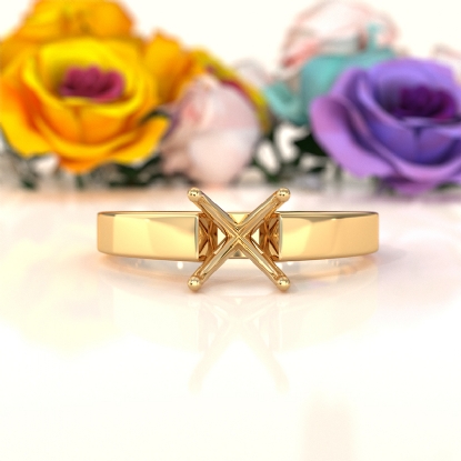 4 gram Cathedral Flat Edge Diamond Classic Plain Traditional Solitaire Engagement Ring Semi Mount made in 14k Gold Yellow. Can be made with Any Diamond Shape Prong and ring width is 3.5mm.
