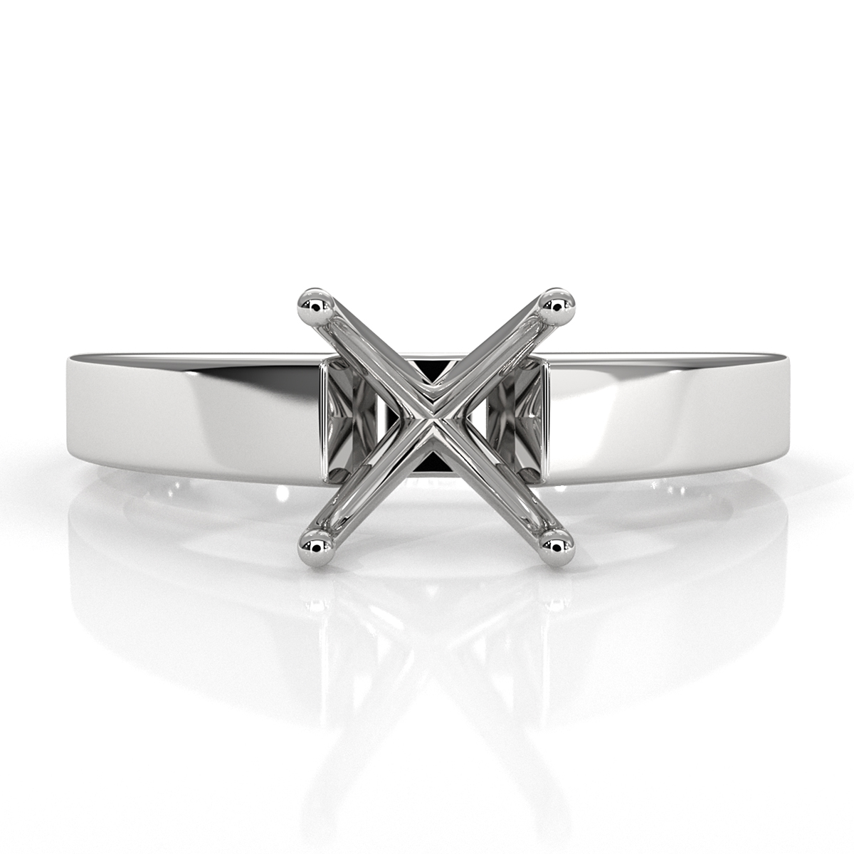 5.5 gram Cathedral Flat Edge Diamond Classic Plain Traditional Solitaire Engagement Ring Semi Mount made in 18k Gold White. Can be made with Any Diamond Shape Prong and ring width is 3.5mm.