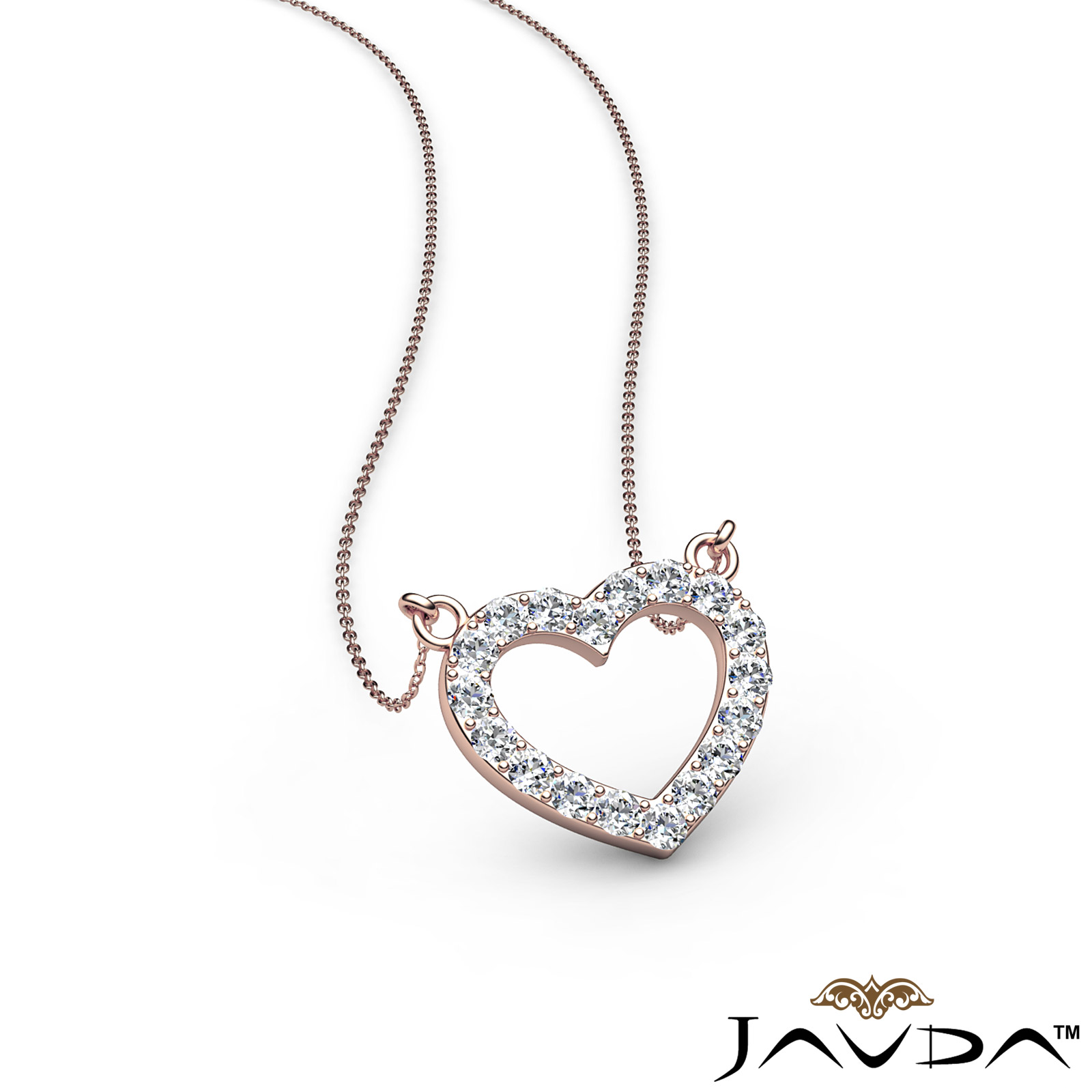 Round Diamonds Open Heart Pendant Necklace In 18k Rose Gold (0.5Ct. tw.)