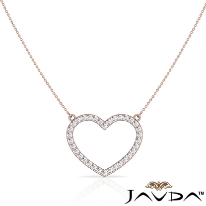 Open Heart Frame Pendant Necklace In 18k Rose Gold Round Diamonds (1Ct. tw.)