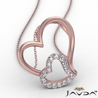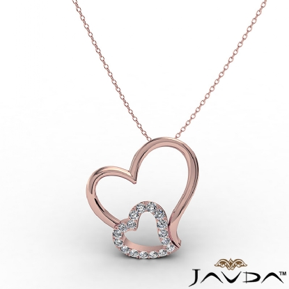 Accent Double Heart Pendant Necklace In 18k Rose Gold Round Diamond (0.18Ct. tw.)